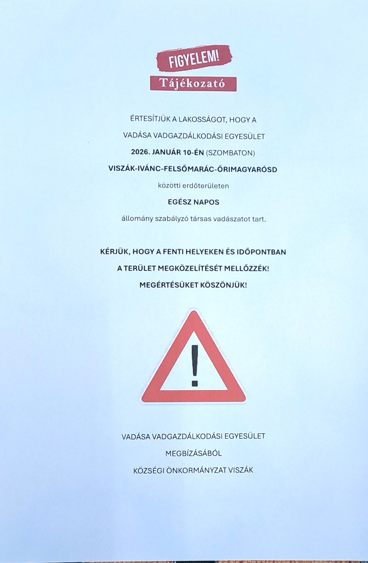 ÉRTESÍTJÜK A LAKOSSÁGOT, HOGY A