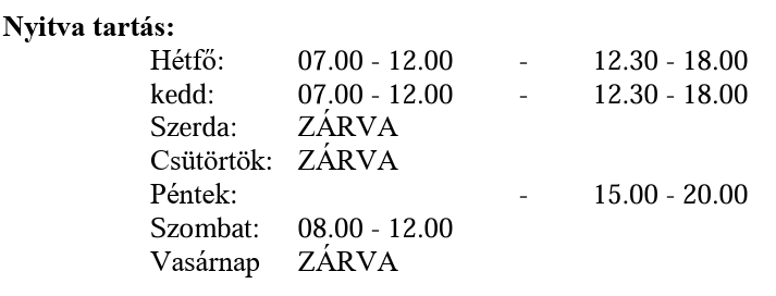 Rendezvények megtartása, illetve szervezése miatt a nyitva tartás ideje változhat.